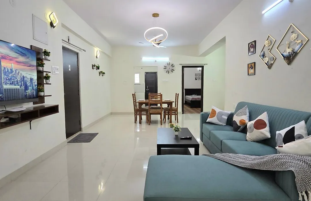 The 2-room Your Home Away From Home Mee Homes 2Bhk Family Apartment Hyderabad includes a terrace and is located approximately a 10-minute drive from the Golconda Fort. Wi-Fi and a private parking lot are also available at the 116 m² apartment.